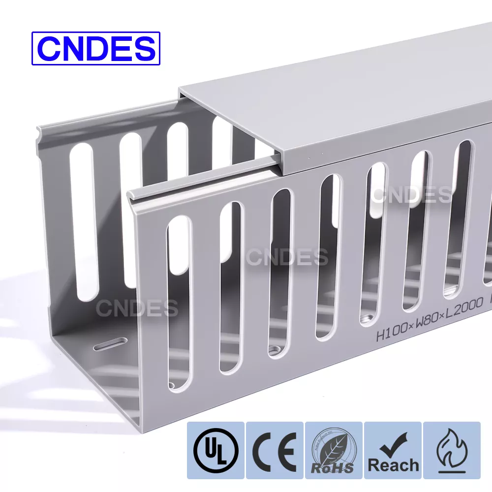 100 × 80 ఫ్లెక్సిబుల్ స్లాట్డ్ PVC వైరింగ్ డక్ట్ 100 mm వెడల్పు మరియు 80 mm ఎత్తుతో, ఈ వైరింగ్ డక్ట్ అనువైనది: