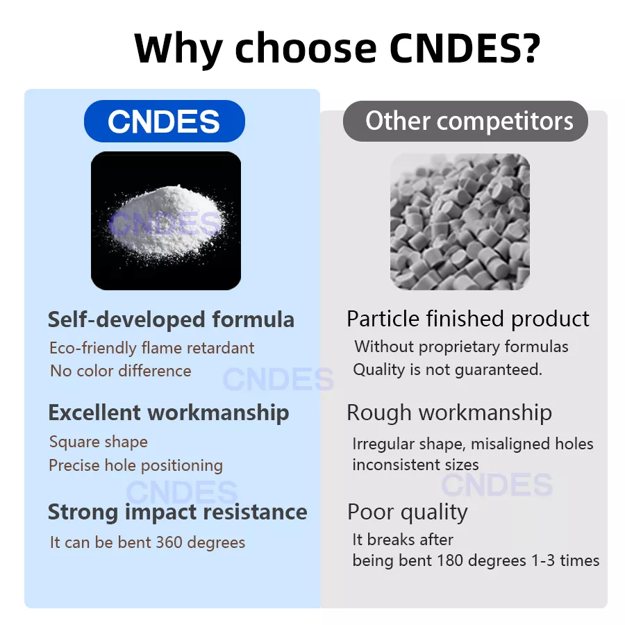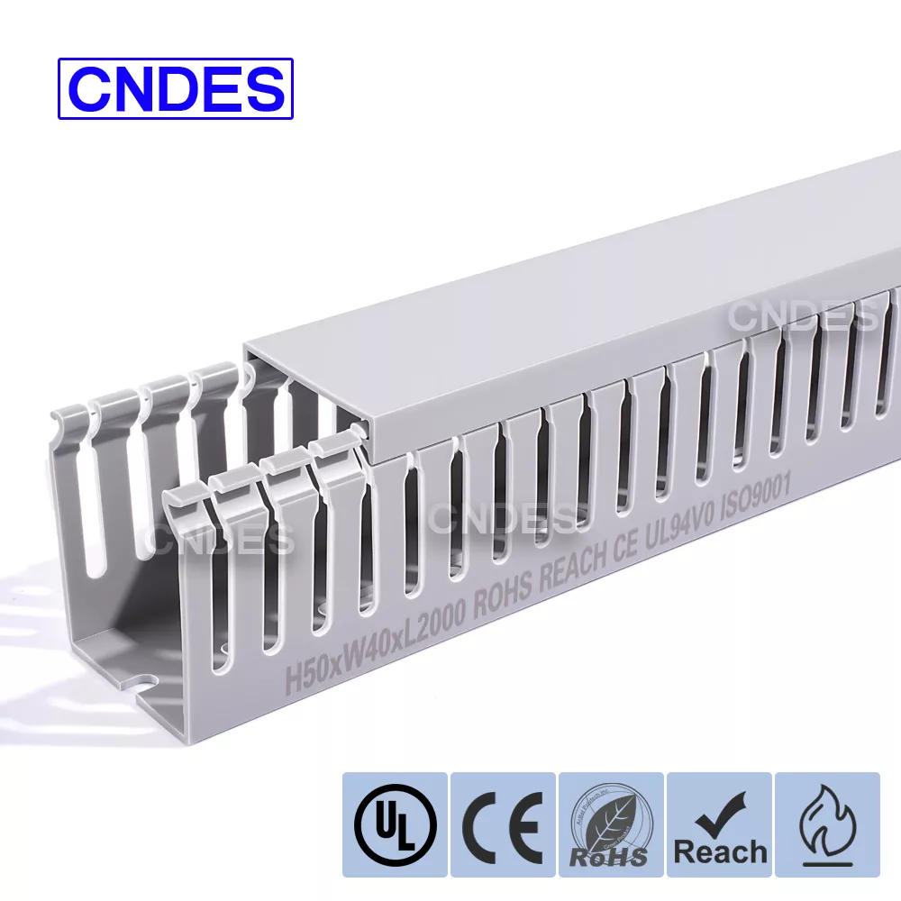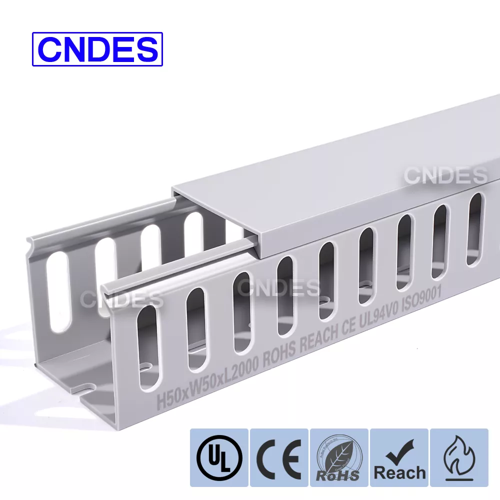నమ్మకమైన 50mm ఎత్తు స్లాట్డ్ PVC ప్యానెల్ వైరింగ్ డక్ట్ సరఫరాదారు కోసం వెతుకుతున్నారా? CNDES అంతర్జాతీయ ప్రమాణాలకు అనుగుణంగా అధిక-నాణ్యత మరియు సరసమైన కేబుల్ నిర్వహణ పరిష్కారాలను అందిస్తుంది.