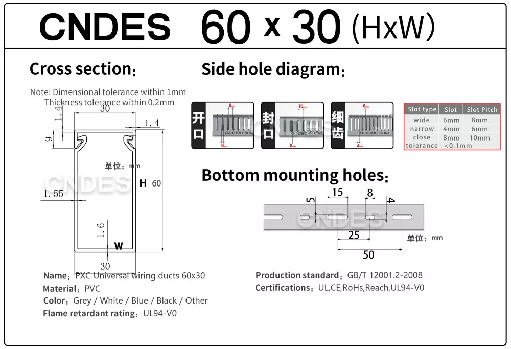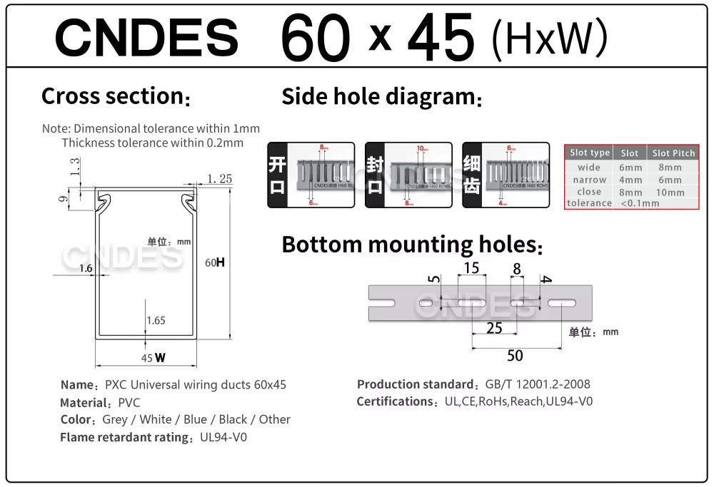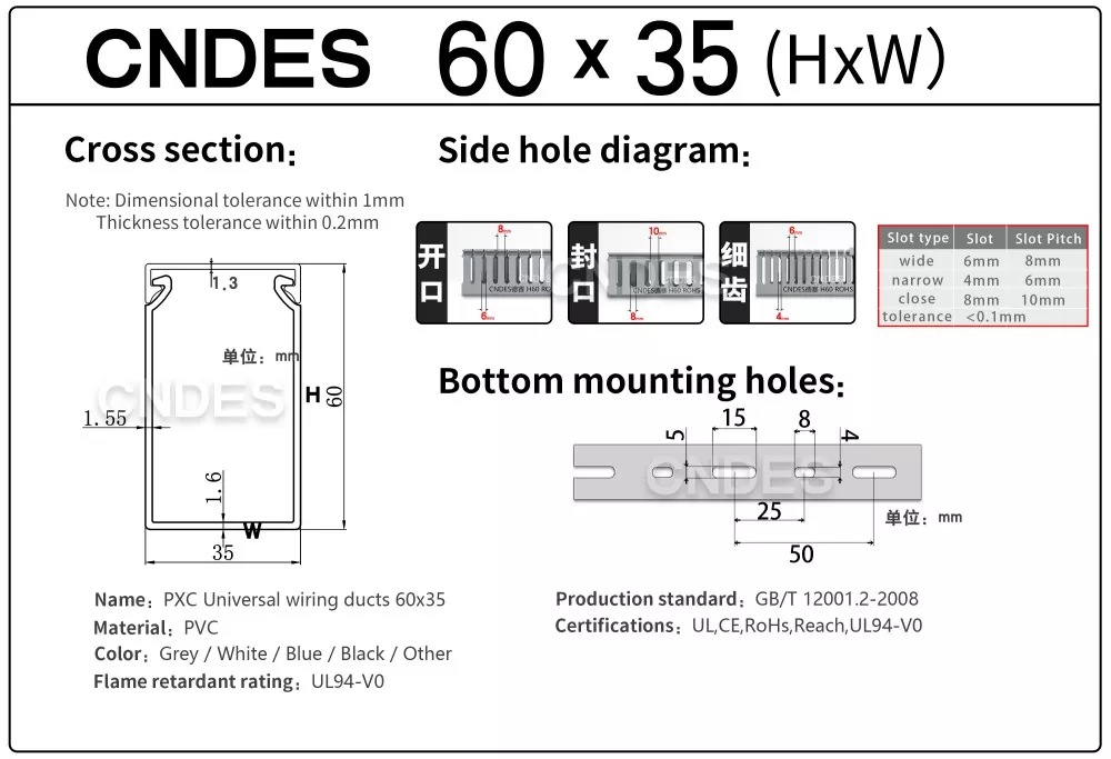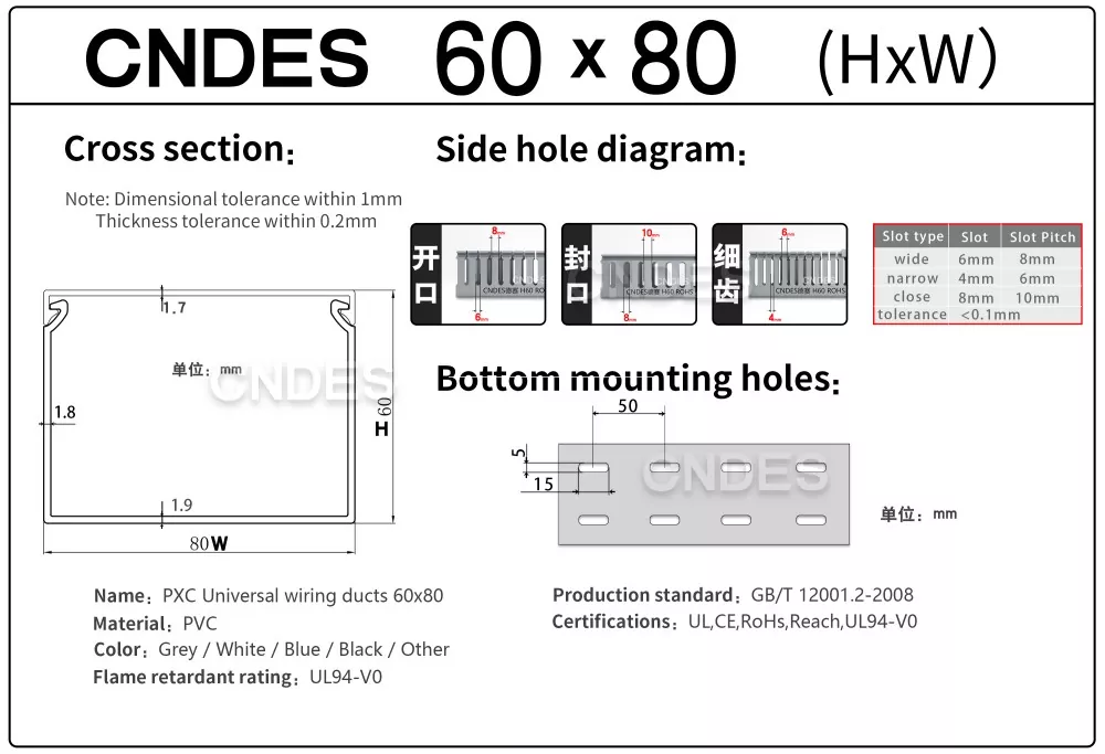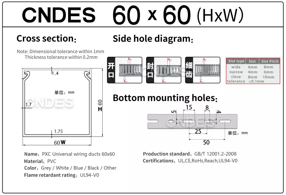 నమ్మకమైన నాణ్యమైన 60mm ఎత్తు గ్రే స్లాట్డ్ PVC వైరింగ్ డక్ట్ సరఫరాదారు కోసం వెతుకుతున్నారా? CNDES ఫ్యాక్టరీ-ప్రత్యక్ష ధరల వద్ద అధిక-నాణ్యత కేబుల్ నిర్వహణ పరిష్కారాలను అందిస్తుంది.
