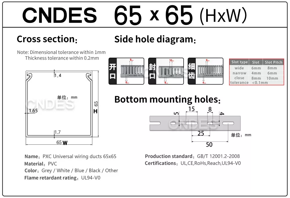 ఒక ప్రొఫెషనల్ తయారీదారుగా, మేము మీకు CNDES స్లాట్డ్ 65×65 PVC కేబుల్ రేస్వేని అందించాలనుకుంటున్నాము.