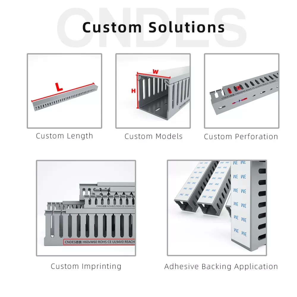 ప్రామాణిక కేబుల్ ట్రేలు క్లిష్టమైన వైరింగ్ పట్టీలను ఉంచడంలో విఫలమైనప్పుడు, CNDES అనుకూలీకరించిన 80×80 స్లాట్డ్ PVC స్విచ్బోర్డ్ వైరింగ్ డక్ట్ మీ మంచి ఎంపిక. 80mm*80mm పెద్ద అంతర్గత స్థలంతో, ఇది డేటా సెంటర్ బ్యాక్బోన్ కేబులింగ్, ఇండస్ట్రియల్ ఎక్విప్మెంట్ పవర్ క్లస్టర్లు మరియు పెద్ద కంట్రోల్ క్యాబినెట్లలో కేంద్రీకృత వైరింగ్ వంటి అధిక-డిమాండ్ దృశ్యాల కోసం ప్రత్యేకంగా రూపొందించబడింది. ఇది పెద్ద సంఖ్యలో కేబుల్లను సులభంగా ఉంచుతుంది మరియు నిర్వహిస్తుంది, అయోమయానికి మరియు రద్దీకి ఒక్కసారిగా వీడ్కోలు పలుకుతుంది.