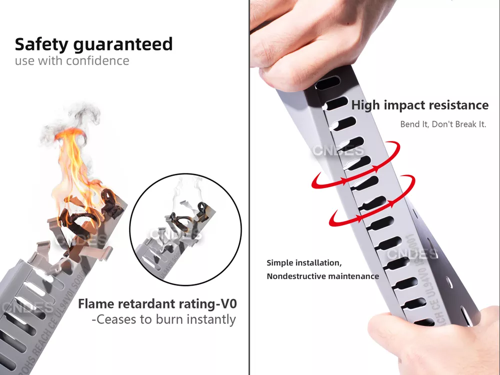 2. ఇండస్ట్రియల్-గ్రేడ్ బలం, సురక్షితమైనది మరియు నమ్మదగినది: నాణ్యమైన 80×80 స్లాట్డ్ PVC స్విచ్బోర్డ్ వైరింగ్ డక్ట్ దట్టమైన జ్వాల-నిరోధక PVC మెటీరియల్ (UL94-V0)తో తయారు చేయబడింది, ఇది దృఢమైనది, మన్నికైనది, ప్రభావం-నిరోధకత మరియు అద్భుతమైన లోడ్-బేరింగ్ సామర్థ్యంతో తయారు చేయబడింది. ఇది వైబ్రేషన్ పరిసరాలలో కూడా కేబుల్లకు శాశ్వత రక్షణను అందిస్తుంది.