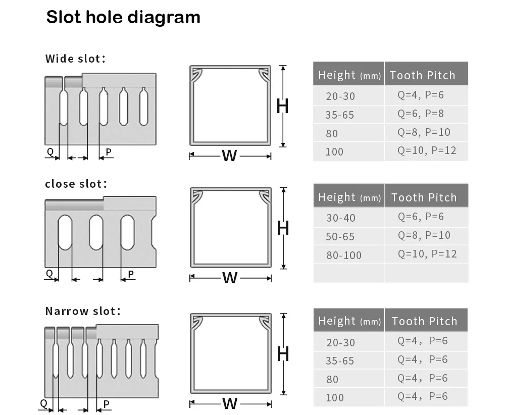 వైరింగ్ నాళాల యొక్క లక్షణాలు మిల్లీమీటర్లలో కొలుస్తారు మరియు ఎత్తు × వెడల్పుగా వ్యక్తీకరించబడతాయి (ఉదాహరణకు, 80 × 50 మిమీ). అందుబాటులో ఉన్న ఇన్స్టాలేషన్ స్థలాన్ని మరియు మీ కేబుల్ల వ్యాసం మరియు పరిమాణాన్ని కొలవడం ద్వారా ప్రారంభించండి. అప్పుడు తగిన స్లాట్ ప్రొఫైల్ను ఎంచుకోండి: మందమైన కేబుల్లకు విస్తృత స్లాట్ (8 మిమీ) అనువైనది, సన్నని తంతులు మరియు మరింత వ్యవస్థీకృత వైరింగ్ కోసం ఇరుకైన స్లాట్ (4 మిమీ) ఉత్తమం. సరైన పనితీరు మరియు వేడి వెదజల్లడం కోసం, మొత్తం కేబుల్ వాల్యూమ్ను వాహిక సామర్థ్యంలో 70% లోపల ఉంచాలని మేము సిఫార్సు చేస్తున్నాము.