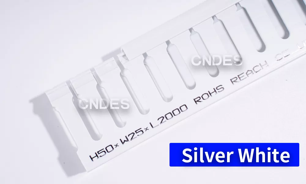 మా కంపెనీ ఉత్పత్తి చేసిన కస్టమైజ్డ్ వైట్ స్లాట్డ్ PVC వైరింగ్ డక్ట్లు సిల్వర్ వైట్గా డిఫాల్ట్ చేయబడ్డాయి, అయితే దీనిని స్వచ్ఛమైన తెలుపు లేదా ఆఫ్-వైట్గా కూడా అనుకూలీకరించవచ్చు. మేము మీ ఎంపిక కోసం విస్తృత స్లాట్, ఇరుకైన స్లాట్, క్లోజ్ స్లాట్ మరియు సాలిడ్ వాల్ వంటి స్లాట్ ప్రొఫైల్లను అందిస్తున్నాము.
